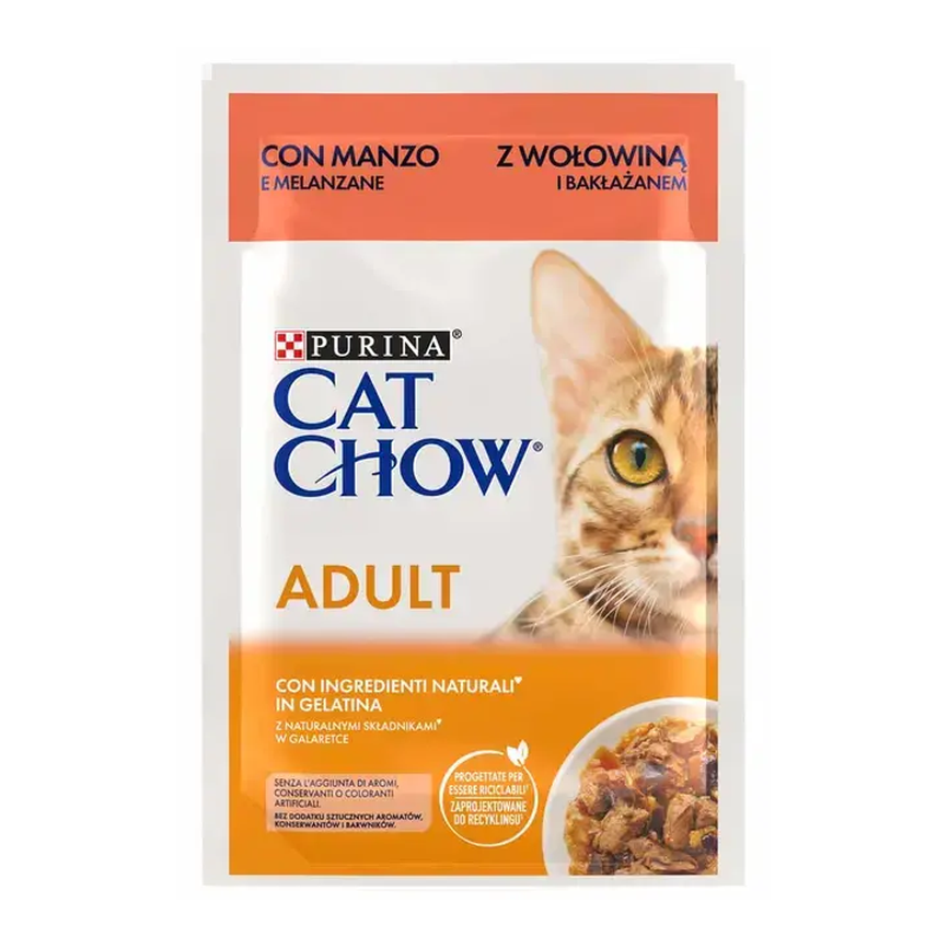 CAT CHOW - GATO NUTRICIÓN HÚMEDA - Adult Buey & Berenjena 26x85g - 2.34KG