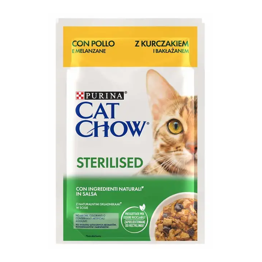 CAT CHOW - GATO NUTRICIÓN HÚMEDA - Adult STERILISED Pollo & Berenjena 26x85g - 2.34KG