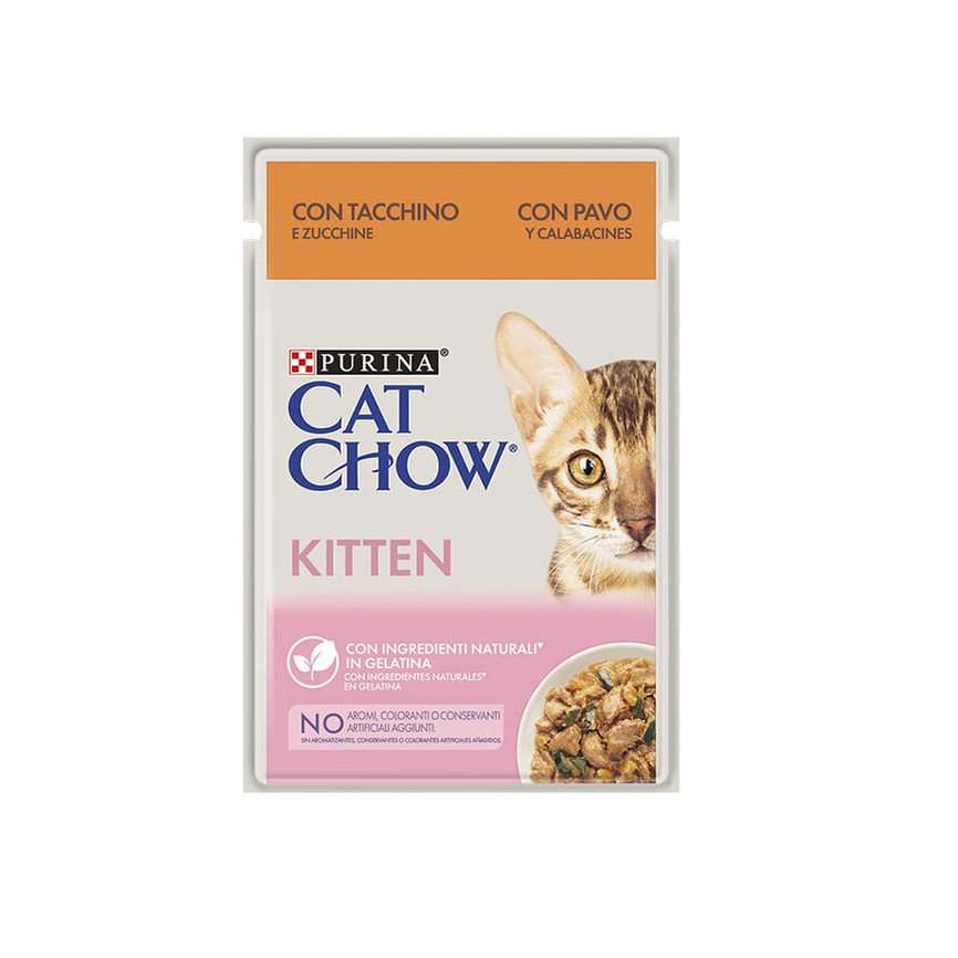 CAT CHOW - GATO NUTRICIÓN HÚMEDA - Kitten Pavo & Calabacín 26x85g - 2.34KG