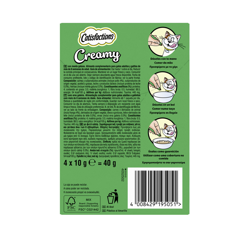 CATISFACTIONS - GATO SNACKS - CREAMY Catnip 11(4x10g) - 440GR