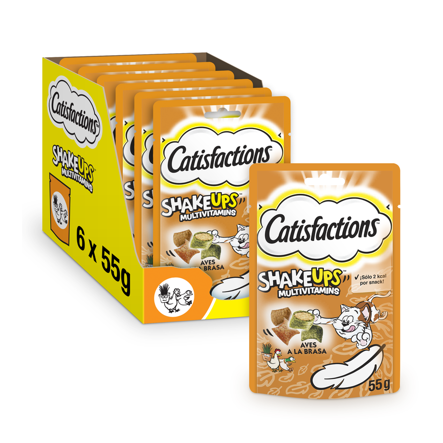 CATISFACTIONS - GATO SNACKS - SHAKES UPs Aves a la Brasa 6x55g - 330GR