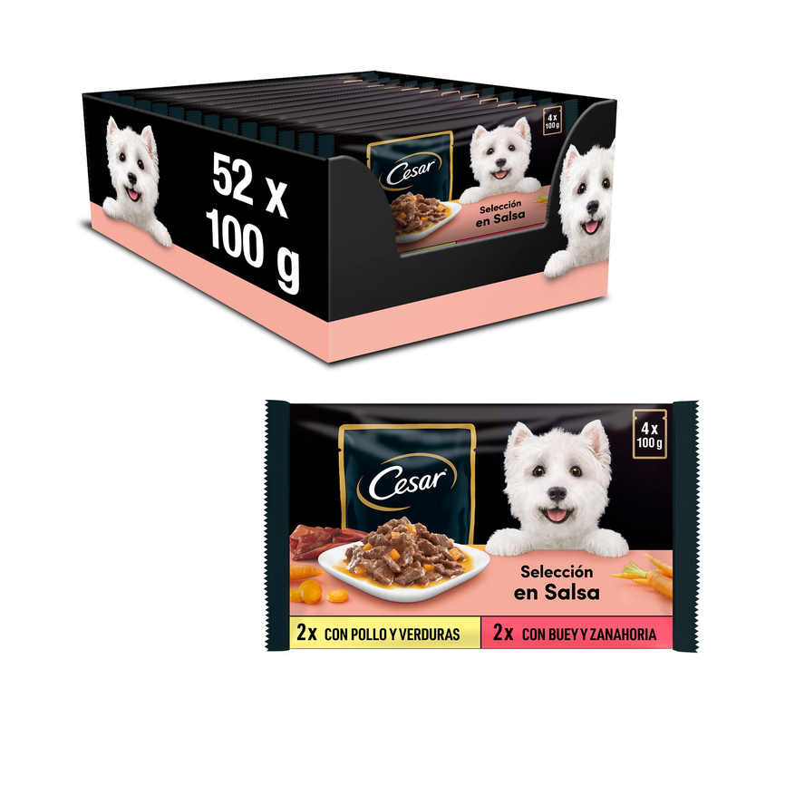 CESAR - PERRO NUTRICIÓN HÚMEDA - Pouch DELICIAS DEL DÍA EN SALSA 13(4x100g) - 5.2KG