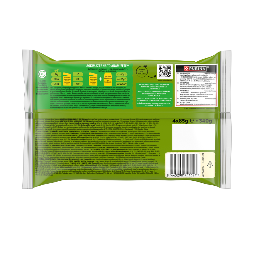 FRISKIES - PERRO NUTRICIÓN HÚMEDA - Adult GELATINA Pouch Buey, Pollo & Cordero 12(4x85g) - 3.4KG