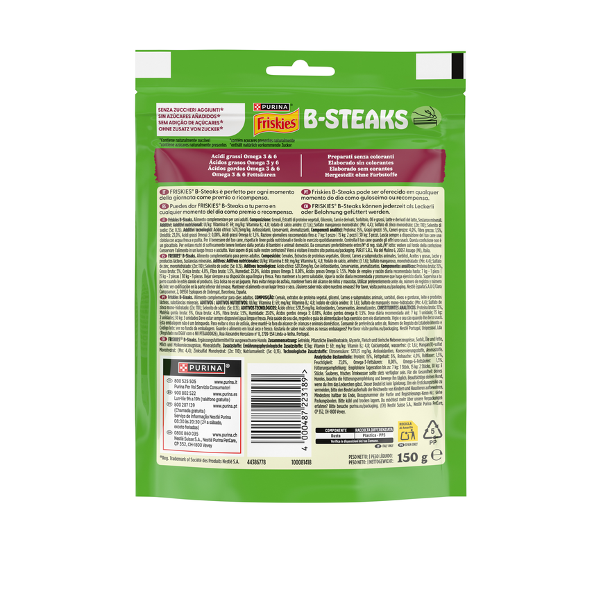 FRISKIES - PERRO SNACKS INDULGENCIA - B-STEAKS Snack 6x150g - 900GR