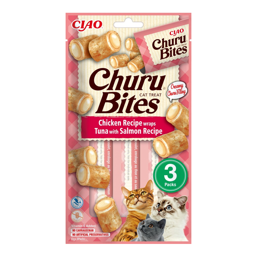 CIAO - GATO SNACKS - CHURU CAT BITES Receta de Atún con Salmón 12(3x10g) - 360GR