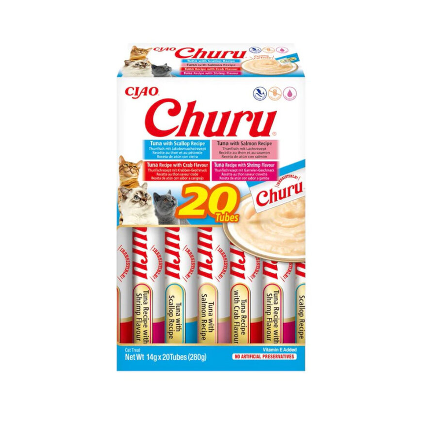 CIAO - GATO SNACKS - CHURU CAT BOX Variedades de Atún con Marisco 20x14g - 280GR