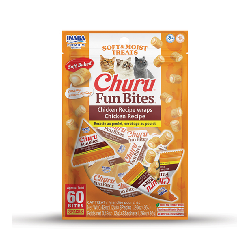 CIAO - GATO SNACKS - CHURU CAT FUN BITES Receta de Pollo 8x12g - 96GR