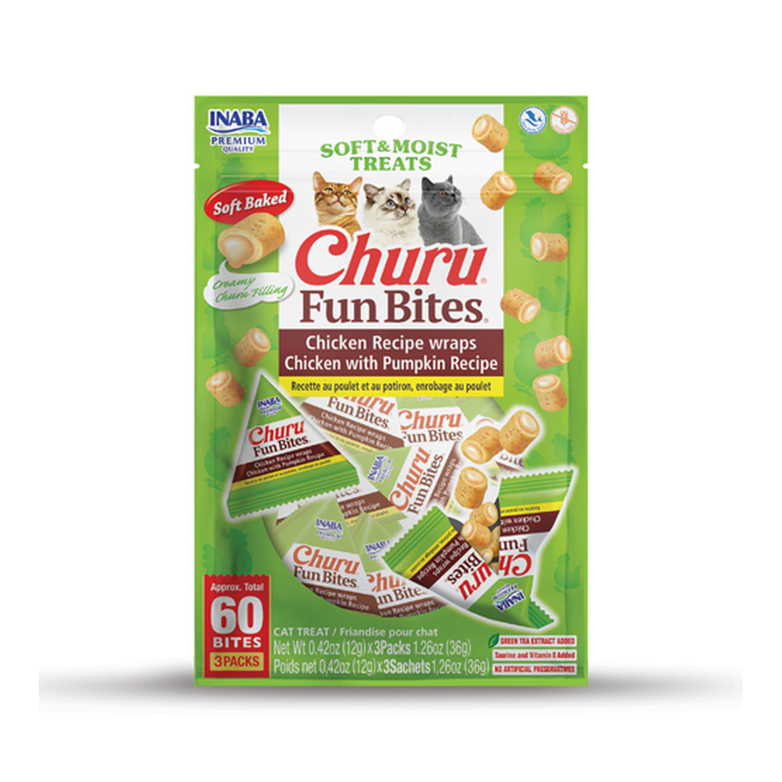CIAO - GATO SNACKS - CHURU CAT FUN BITES Receta de Pollo con Calabaza 8x12g - 96GR