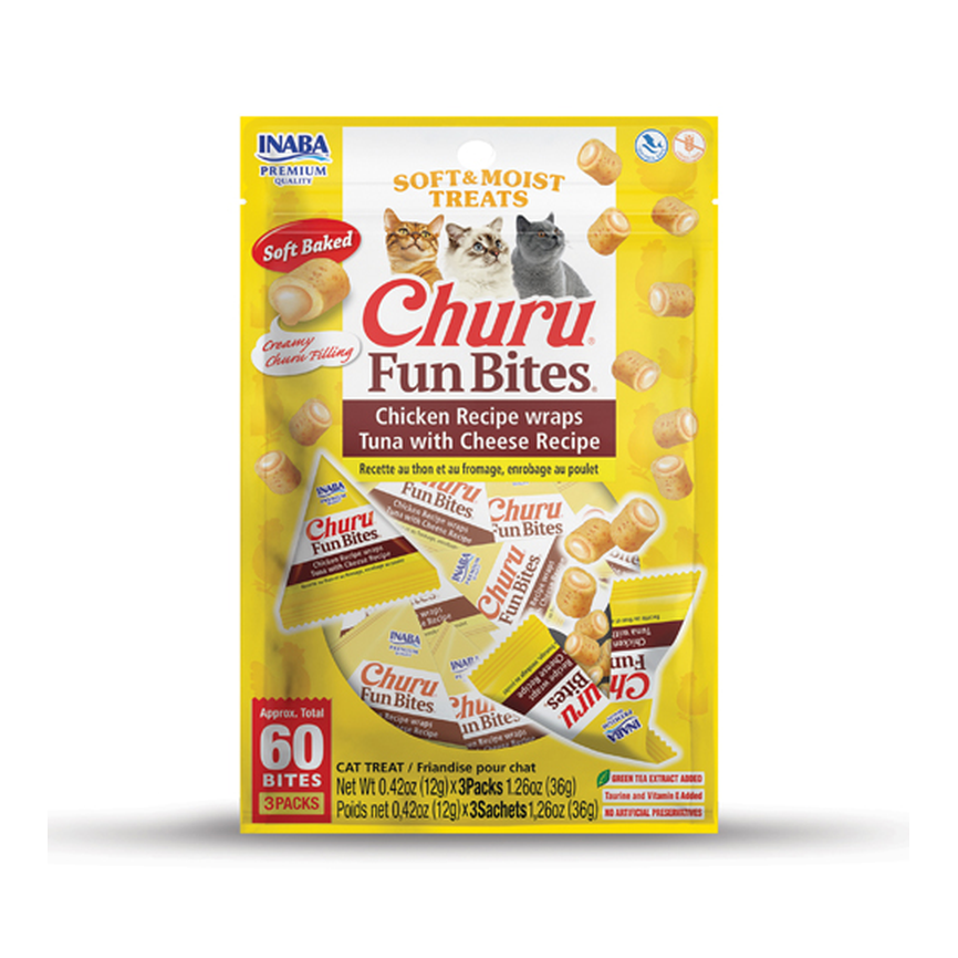 CIAO - GATO SNACKS - CHURU CAT FUN BITES Receta de Atún con Queso 8x12g - 96GR