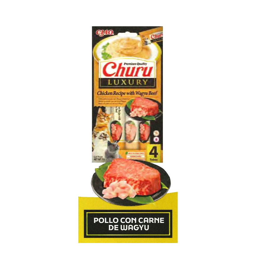 CIAO - GATO SNACKS - CHURU CAT LUXURY Receta de Pollo con Wagyu 12(4x14g) - 672GR