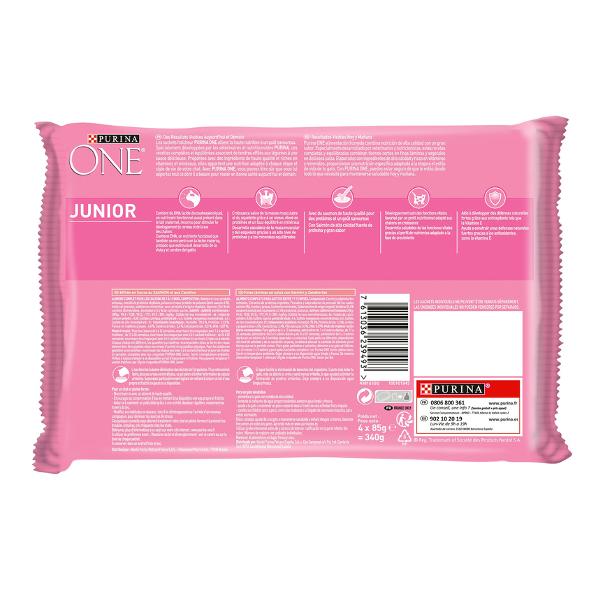 ONE - GATO NUTRICIÓN HÚMEDA - CAT JUNIOR Salmón Pouch 12(4x85g) - 4.08KG
