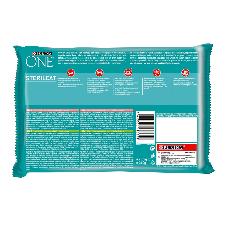 ONE - GATO NUTRICIÓN HÚMEDA - CAT STERIL Salmón & Pavo Pouch 12(4x85g) - 4.08KG