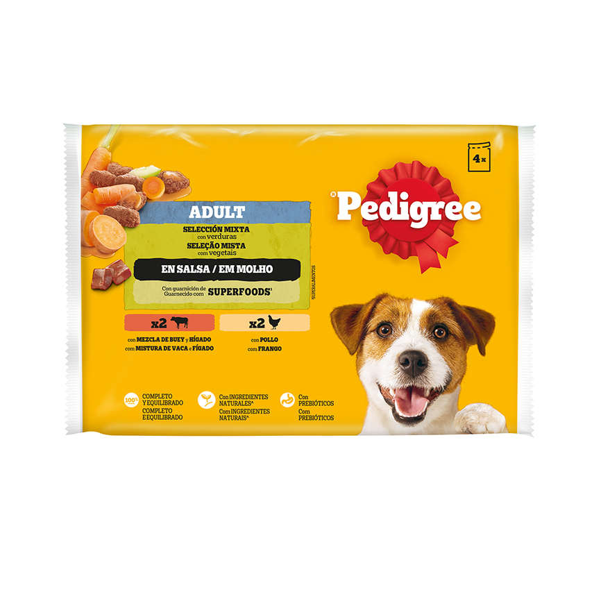 PEDIGREE - PERRO NUTRICIÓN HÚMEDA - POUCH Pollo, Buey & Verduras 13(4x100g) - 5.2KG
