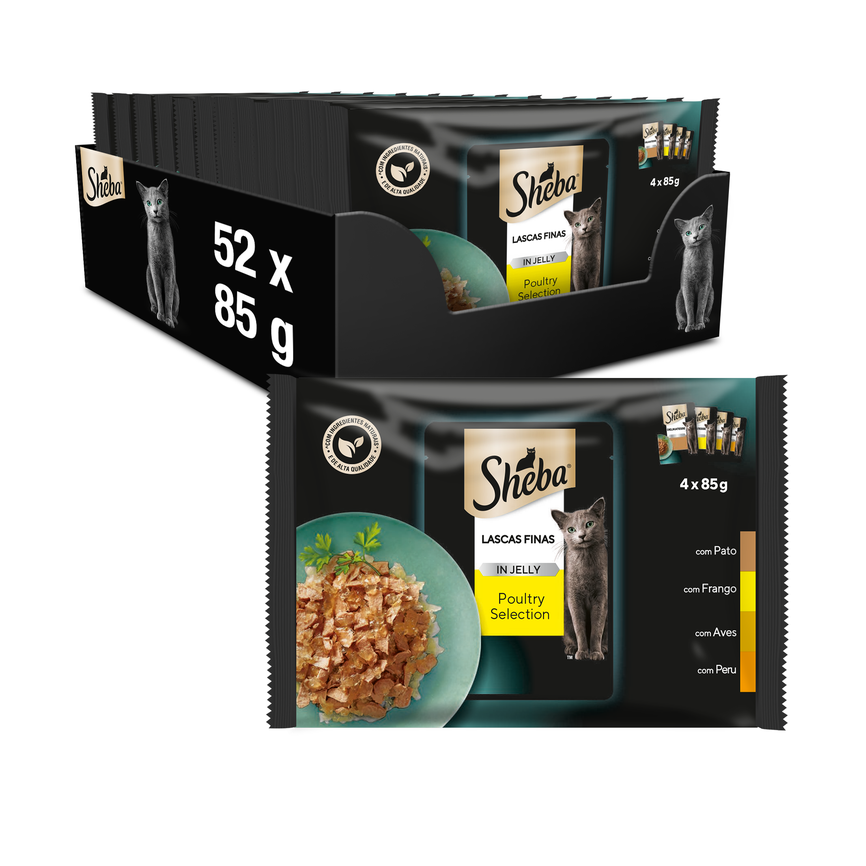 SHEBA - GATO NUTRICIÓN HÚMEDA - DELICATEZZE Gelatina Aves Pouch 13(4x85g) amarillo - 4.42KG