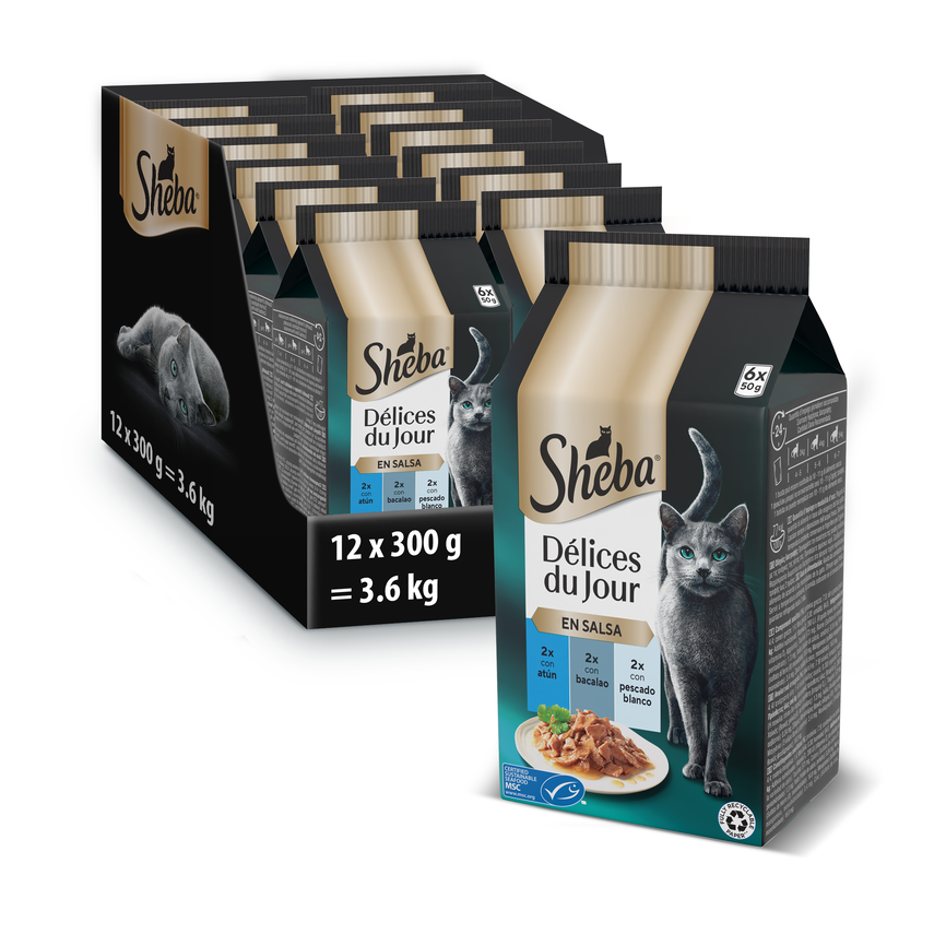 SHEBA - GATO NUTRICIÓN HÚMEDA - MINI DÉLICES DU JOUR Pescados 12(6x50g) - 3.6KG