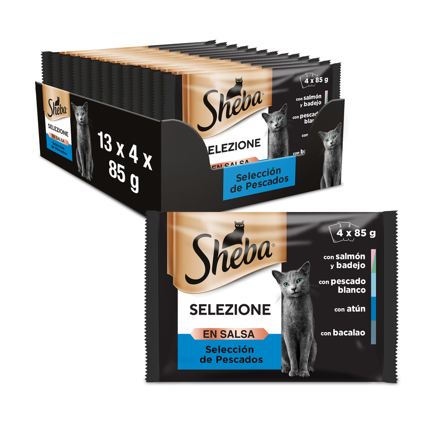 SHEBA - GATO NUTRICIÓN HÚMEDA - SELEZIONE Pescado en Salsa Pouch 13(4x85g) azul - 4.42KG