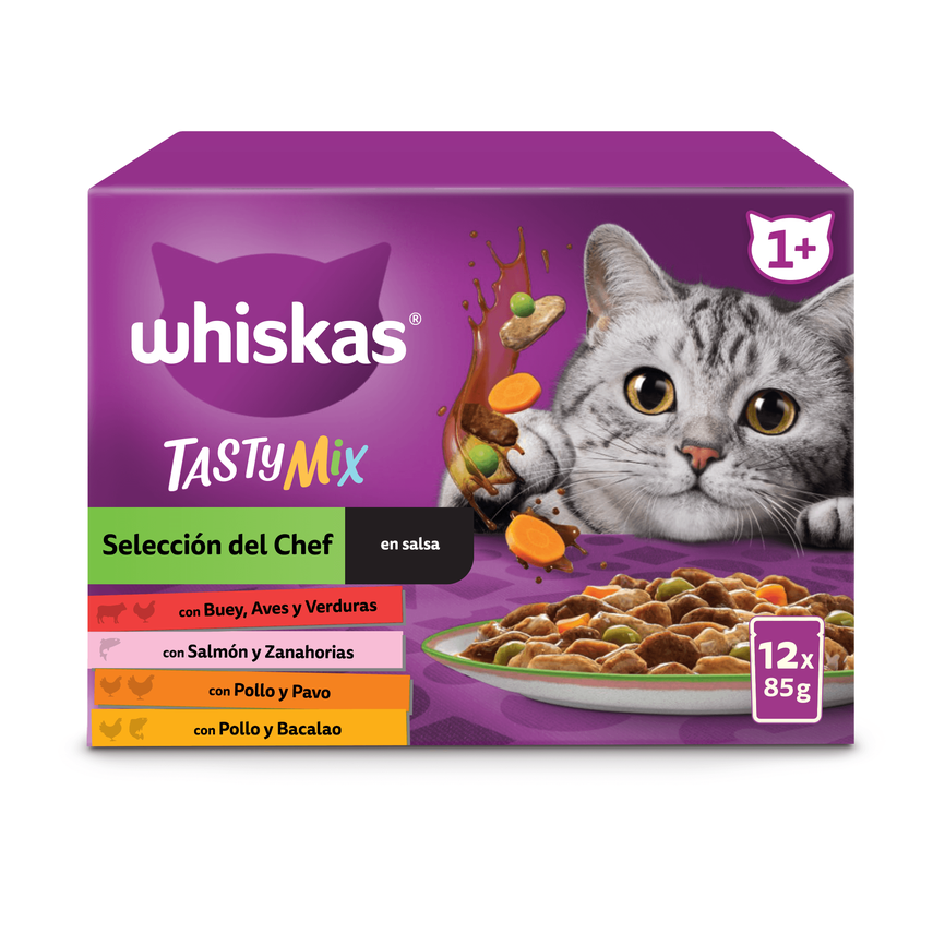 WHISKAS - GATO NUTRICIÓN HÚMEDA - BULKPACK 38+10ud 4(12x85g) TASTY MIX CHEF CHOICE - 4.08KG