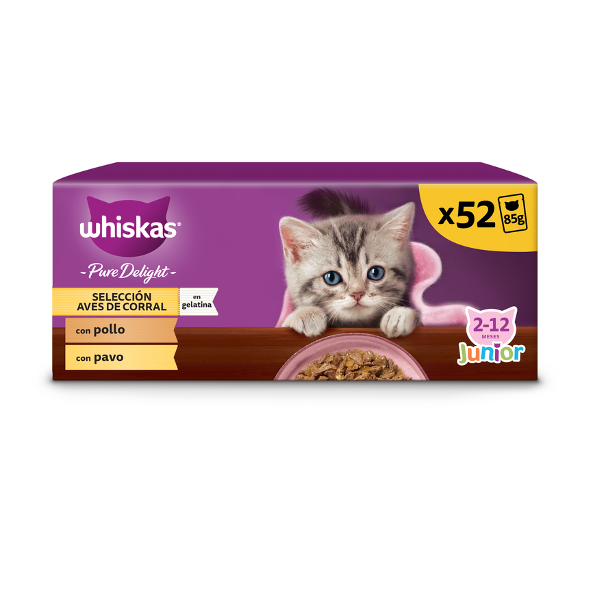 WHISKAS - GATO NUTRICIÓN HÚMEDA - PURE DELIGHT JUNIOR Aves 13(4x85g) - 4.42KG
