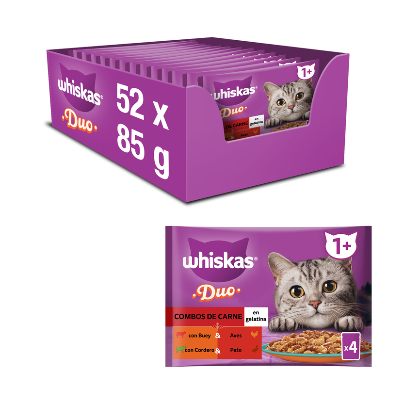 WHISKAS - GATO NUTRICIÓN HÚMEDA - TASTY DUO MEATY COMBOS MP4 13(4x85g) - 4.42KG