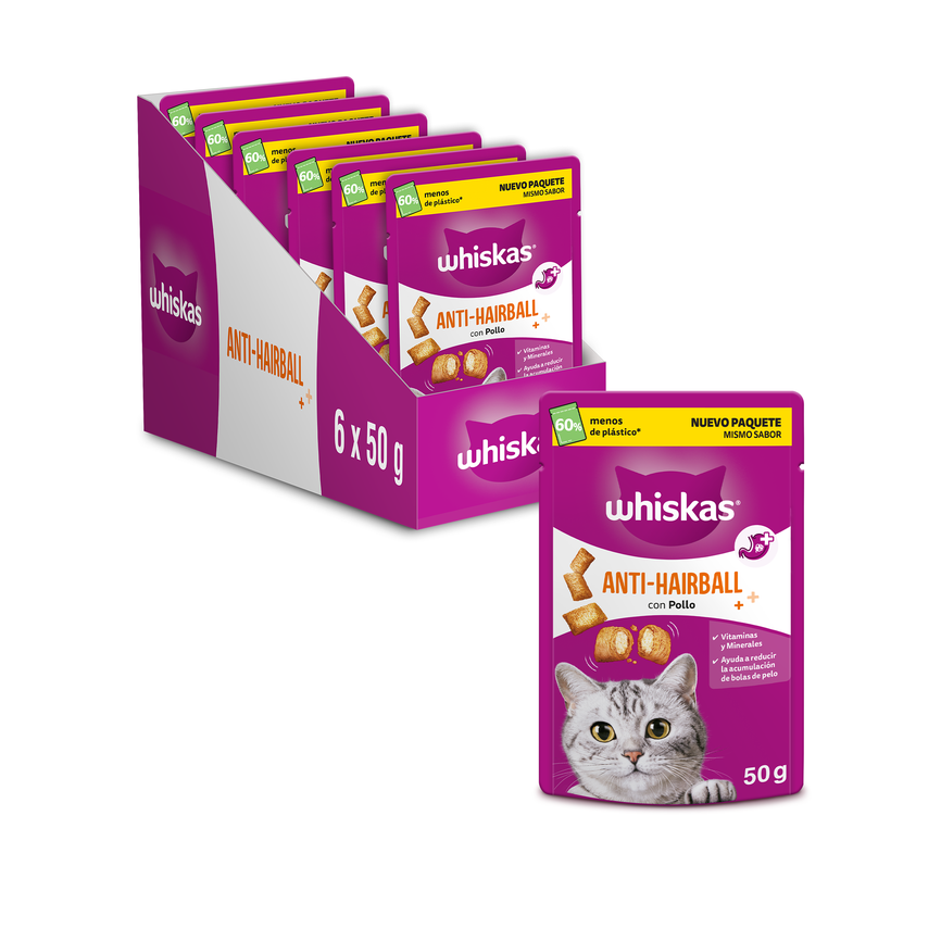WHISKAS - GATO SNACKS - SNACKS ANTI-HAIRBALL 6x50g - 300GR